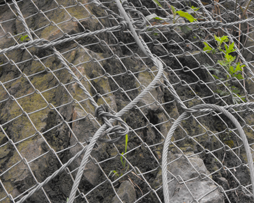絞索網由高強度防腐鋼絲成索后編制,菱形網孔內切圓直徑250mm,網片標準規格10x3.5m;