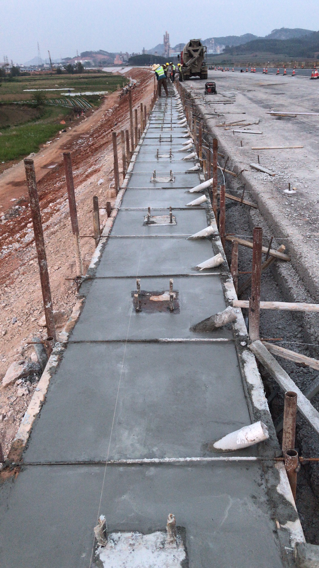 5.聲屏障基礎應按設計要求預埋排水管,排水出口不得沖刷路基;與無砟軌道線間集水井排水管交叉處基礎混凝土施工不得破壞排水管。基礎頂端每2m預埋?100mmL形PVC管,以排放聲屏障內側路肩面的雨水;基礎中部變截面處每4m按2%坡度預埋?75mm直形PVC管,以排出路基本體滲水和電纜槽泄水;無砟軌道線路路基線間集水井的連接排水管可澆筑在基礎中。路基聲屏障應設排水設施,外側排水出口應避免對路基邊坡產生沖刷,并防止漏聲。